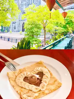 Nhà hàng La Place is a lovely cafe with a view of Hanoi's symbol, the St. Joseph Cathedral. It's a recommended cafe that's also featured in guidebooks. The terrace seats on the second floor are the perfect seats for viewing the St. Joseph Cathedral. I was defeated by the heat and stayed inside, but I recommend the terrace seats during cooler times! What I ordered: Lemon soda (45,000 VND) Crepe (forgot the price 🤦🏼♀️) Despite being in the middle of a tourist spot, the prices were very reasonable! Honest review☕️━━━━━━━━━━━━━━━ Waiting time: None Shop atmosphere: Relaxed and calming Use scene: Tea or meal◎ Customer base: 1 person/Family/Couple Points to note: ・There are seats on the first floor, so if you prefer the second floor, tell the waiter first🙌・The price is slightly higher than the price written in guidebooks (as of August 2023)