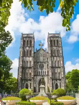 Hanoi Cathedral represents the splendor of French architecture, with interior stained glass windows and towering top highlighting sophistication; Nha Tho Street, which faces the church, is home to a range of boutiques and cafes for you to roam and savor.