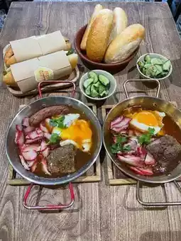 Served on crispy bread with pork, chicken, beef and vegetarian options