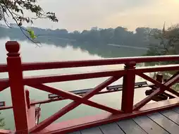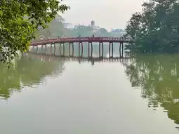 With the Red Bridge (Cau Thê Húc) as a prominent red bridge used to cross to the temple