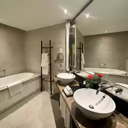 You can ride a buggy or take a walk from the hotel lobby to your room, and the sunset bar on the way is a popular spot for non-guests too 🍸
