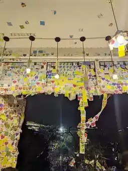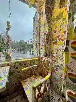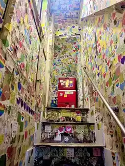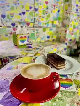 Pretty good coffee & cake in a rather kooky environment! If you love post-its and random messages, you'll have found your new home.