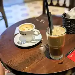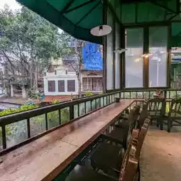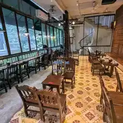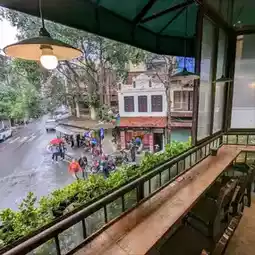 The first floor is the bar work area, with fewer outdoor seats that are quite crowded. The second and third floors are more spacious and relaxed, with wooden floors, white walls, and antique wooden furniture and chairs. You can choose a seat by the window terrace to enjoy a coffee while admiring a corner of the bustling Old Quarter, offering a sense of leisure even amidst busyness, especially on rainy days when the atmosphere is even better.
