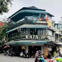 KAFA Café is a coffee shop located in the Old Quarter of Hanoi, on the same street as the famous French bakery Banh Mi 25, situated at the corner of a green three-story building.