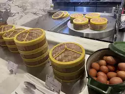 You can choose from omelettes, scrambled eggs, fried eggs, poached eggs, boiled eggs, and hot spring eggs for egg dishes.