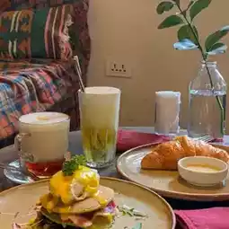 ☕️ Xofa serves both drinks and salty foods and cakes. I chose a portion of jasmine oolong foam with salty cream, a portion of chestnut earl gray milk tea, a portion of Spinach Egg Benedict served with Pancakes and a portion of croissants served with condensed milk. The total bill for adding 7% VAT is 346k - I think it's quite high compared to the general average. In terms of quality, I rate the drinks and food at Xofa as good, not excellent, and there are still a few things I don't like, such as the oolong tea with a light foam layer. How about everyone, what drinks and food do you like best at Xofa?