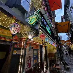 At night, the lights come on, creating a different atmosphere from the daytime.