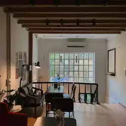 The facade has 1-2 small seats, the inside of the first floor is simply decorated, the upper floor has sofas, the overall tone of the restaurant is dark so it is very cozy and comfortable. I think going on a sunny autumn day like me is also beautiful, but going on a winter day is also great because the restaurant has a projector, plus this vibe, maybe you can sit all day.