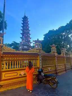 Trấn Quốc Pagoda is easily accessible from Hanoi city by taxi or bus. It is about 15 minutes away from the city center. If you take a taxi, just tell the driver "Trấn Quốc Pagoda" or "Trấn Quốc Pagoda" 🙆🏻