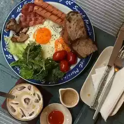 Little Pie is a small, pretty cafe, comfortable from the service to the space. The shop has 2 floors, the decor is "messy but very tasteful". Today I ordered a "Fancy Brunch" (120k) with an iced latte (50k). The brunch and drinks are delicious, full and beautifully presented. Little Pie also has a "cat friend" who looks very cute.