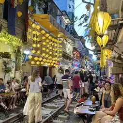 Hanoi's Train Street is a unique tourist spot in the Old Town area of Hanoi, Vietnam. 🚉