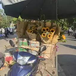 Colorful and cute bouquets are piled up on bicycles and motorbikes. There are various flowers such as roses, gypsophila, and lotus 🪷🌹🌻🪻🌼