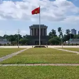 The area is surrounded by beautiful gardens, ponds and large trees, giving a sense of peace. You can walk around the garden. Although you cannot enter the building, there are Ho Chi Minh's wooden houses and beautiful gardens around it for walking. If you like history and architecture, you should not miss it.