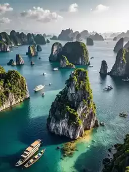 Vietnam 🌴, a peninsula country in Southeast Asia, boasts a rich history and picturesque landscapes. Known as the "Paris of the East," it's home to the must-see Ha Long Bay 🏞️, where you can witness the fusion of millennia-old history and natural beauty.