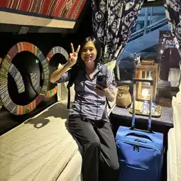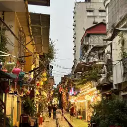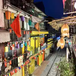 The original itinerary for this morning was canoeing or taking a speedboat cruise at our own expense, but we chose to relax on the private balcony of the Royal Suite and seize the last moment to enjoy the beauty of Halong Bay. After checking out at noon, we returned to the yacht dock and took the pre-booked luxury car back to Hanoi city. When we arrived at Hanoi Railway Station, we first went to the ticket center to store our luggage, and then walked lightly to the ruins of the Thang Long Imperial Citadel. Its status is like the Forbidden City in Beijing. Unfortunately, many buildings have been damaged and collapsed after the war, and we can only imagine its splendor from the simulation map. During the Vietnam War, it was used as the command center of North Vietnam, and the underground air defense situation room at that time was preserved. As night fell, we went to the famous Internet celebrity check-in spot-Train Street, where there is a currency exchange office Vàng Bạc Nhật Nam Hùng Thuý, which provides the same exchange rate as XEapp. Friends in need can refer to it. We walked into a ChuChu hidden at the end of the alley. Railways, ordered a cup of egg coffee and passion fruit, watched three trains pass by in front of us in a row, it was very shocking, the alleys near the train street were very lively, delicious food and local snacks, we also tasted CHAO GA (chicken porridge) and MY BO (beef noodles) which were highly recommended by the locals, after eating and drinking, we enjoyed a 60-minute full body essential oil + hot stone massage. If we hadn't taken a night train today, we should have returned to the hotel to rest by this time. At nine o'clock in the evening, the city of Hanoi was still bustling with traffic. After returning to the station, we dragged our luggage and prepared to take the night train to Sapa, a famous mountain town in North Vietnam.