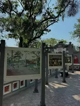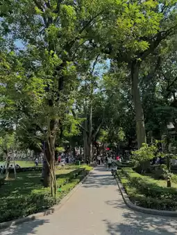 During the day, you can take a leisurely walk and see the small turtles in the lake. At night, the surrounding lights create a romantic atmosphere. On weekends, the area turns into a pedestrian street with many food stalls and street performances. There are also many cafes nearby where you can sit down and enjoy a cup of Vietnamese coffee, experiencing the slow pace of life in Hanoi.