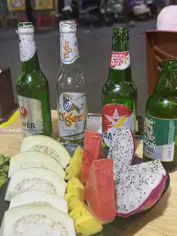Atmosphere: Lively street, cheap beer, various street food, live music