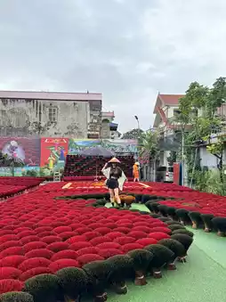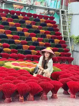Located in the outskirts of Hanoi, the "Quang Phu Cau Incense-Making Village" boasts a history of over a hundred years in incense production. Just an hour's drive from Hanoi, this is Vietnam's most renowned incense-making village. In the courtyards, incense sticks are laid out to dry in fan-shaped arrangements, resembling blooming flowers. In addition to the traditional red, the incense sticks come in a variety of colors, making it a colorful and photogenic destination.