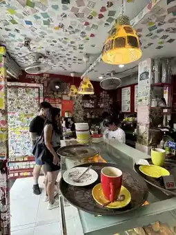 What sets this café apart is its signature concept: walls covered in colorful sticky notes, handwritten by visitors from around the world. The notes add a personal, heartwarming touch to the experience, making it feel like you’re part of a global community, all sharing good vibes over coffee.