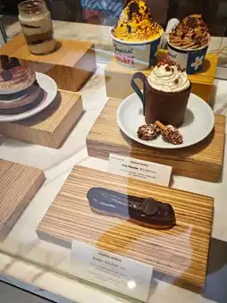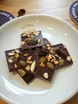 We ordered ice cream and latte for dine-in, and the store also provided nut chocolate for us to taste. Holding the chocolate in your hand, it gradually melts with your body heat. When you take a bite, the nutty aroma and the sweet-tangy flavor of raisins are perfectly balanced. Luckily, we chose to dine in, as this delicious treat would likely melt on the way home!
