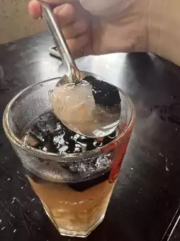 We found the black rice yogurt quite sweet, but the flavor of the black rice offset the sweetness. The lotus seed soup was refreshing and refreshing, and it was a great way to cool down. Besides the lotus seeds, it also contained something like pearls wrapped in coconut flakes. It had a familiar flavor, but I couldn't figure out what it was.