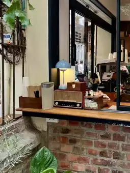 Upon arriving at 1975 Coffee, the first thing that strikes you is the striking exterior. The shop's warm, vintage colors and simple wooden signboard display the shop's name. The storefront is decorated with old bicycles, military helmets, and vintage radios, making you feel like you've stepped into an old photograph of post-1975 Vietnam. As soon as you open the door, you're greeted by the aroma of freshly roasted coffee and the sound of old Vietnamese music.