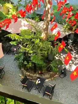 Hom Nao Cafe is located in the Old Quarter, not far from Hoan Kiem Lake. While the entrance may appear simple, it exudes a unique charm. The atmosphere around the cafe feels like an old house thoughtfully renovated. Although the exterior might not catch your eye, stepping inside reveals a sense of simplicity and warmth that is immediately palpable.