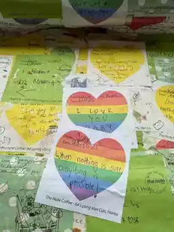 The whole vibe here is UNREAL! 🚀 This spot is basically Hanoi’s cutest sticky-note shrine—every wall, ceiling, and piece of furniture is covered with thousands of colorful post-its covered in sweet messages from around the world. You get your own post-it when you go, so you can splash your feels and leave a little part of your soul behind. 💌