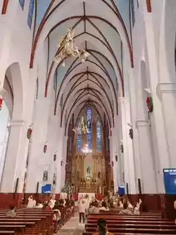 St. Joseph's Cathedral in Hanoi is a Gothic Revival-style Catholic cathedral built in 1886 during the French colonial period. Located near Hoan Kiem Lake in Hanoi, Vietnam, it is one of the city's most iconic landmarks. Modeled after Notre Dame Cathedral in Paris, France, the building showcases the beauty of Gothic architecture, including its spires and stained-glass windows.