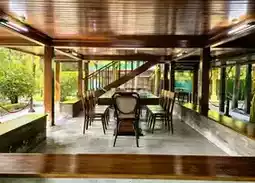 Ho Chi Minh's Former Residence in Hanoi is the former home of President Ho Chi Minh, located next to Ba Dinh Square in Hanoi, Vietnam. It is a two-story wooden stilt house. The lower floor of this stilt house is a wall-less reception room, while the upper floor contains the bedroom and office. Its architectural style is simple and is a typical example of traditional Northern Vietnamese architecture.