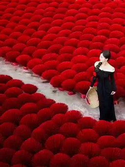 Advance notice: The village is mainly households drying incense in their yards. Unless you want to take beautiful photos, there’s no need to make the trip. It’s a two-hour round trip from the city center by car. However, this place is indeed very unique, the whole village is dedicated to incense making, and many families allow photography. You can compare several houses, each is different and charges vary.
