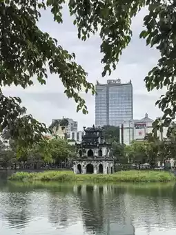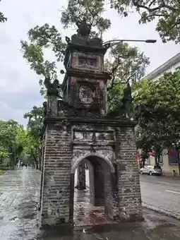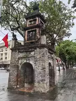 Turtle Tower stands on a small island in the middle of Hoan Kiem Lake as a commemorative pagoda. It honors the national hero Lê Lợi from Vietnamese history, who, as mentioned earlier, received a sword from the divine turtle in Hoan Kiem Lake, led the Lam Sơn uprising to defeat the Ming army, and established the Lê dynasty. Ten years later, Lê Lợi was boating on the lake again, encountered the golden turtle, returned the sword to it, and the sword was plunged into the lakebed, forming the present-day Turtle Tower.