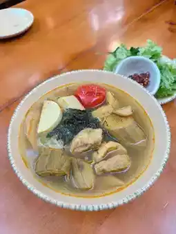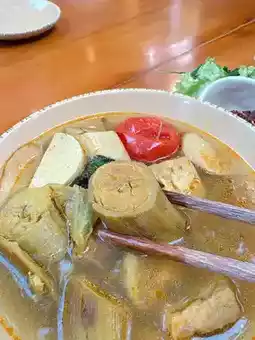 I had the vegan noodles, which contain the local specialty, banh xeo, and something like a banana. ✨