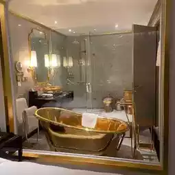 The highlight is that everything in the room is gold. The golden bathtub is very prominent. Even the toilet is gold. It looks very luxurious. The room is spacious and the bed is comfortable. The price I got was around 3,xxx baht. The hotel has a swimming pool with a view of Hanoi.