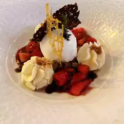 Thyme Raspberry and Strawberry Soufflé, Lemon Sorbet