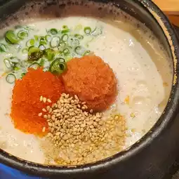 I ordered the soy milk pasta with mentaiko. True to Japanese-style spaghetti, it featured flat noodles topped with sesame seeds and chopped green onions!