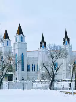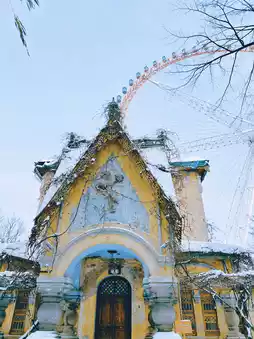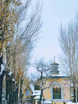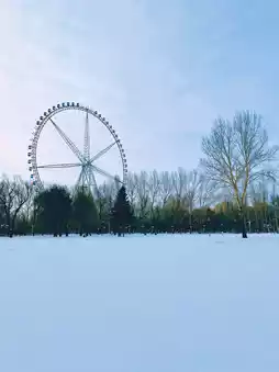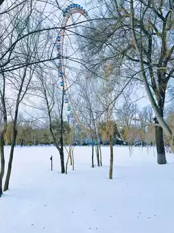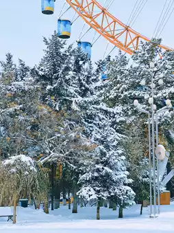 Now it has become an open public leisure park. The air here is fresh after the snow. There is a church in the park⛪️, a Ferris wheel, and a white castle in the distance...