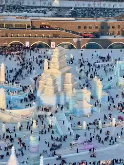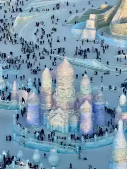 ✅The Harbin Ice Festival is a sculpture made of ice and decorated with beautiful lights.