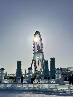 When we went, it was December 31, 66. At night, there will be beautiful colorful lights and a lot of people. From the picture, people look like ants. It's a picture taken from the Ferris wheel. Traveling to Harbin during this time is very good. The weather is cold and some days there is a little snow.