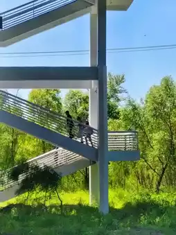✓The trees in the middle and beside the bridge exit