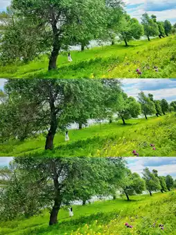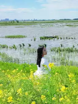 ✓Place the camera by the roadside, stand behind the rapeseed flowers, shoot from above