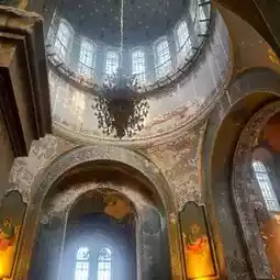 The building is truly impressive with its high towers, golden finishings and vivid colors. The inside of the cathedral is a museum, where you can see some beautiful old paintings and the beautiful roof.