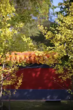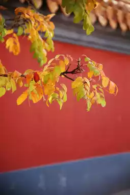 When the bright and brilliant autumn colors meet the red walls and glazed tiles