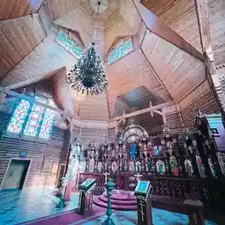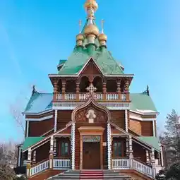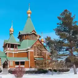 This church was rebuilt in late 2009 in Volga Manor, or Russian Village, on the outskirts of Harbin. It is a wooden Orthodox church modeled after the original destroyed cathedral. It used to be an important symbol of the Russian people in Harbin.