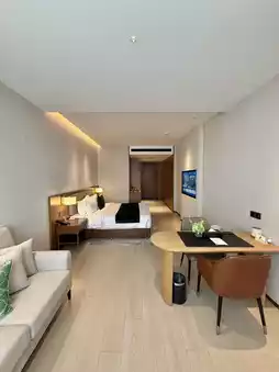 It is about 2️⃣ kilometers away from Central Street and Hongzhuan Street Morning Market, and about 3️⃣ kilometers away from Ice and Snow World, Sophia Cathedral, and Harbin Snowman. Subway/car-hailing/self-driving 🚗 are very convenient! Moreover, you can directly enjoy the sunset over the Songhua River and the Ferris wheel of the Ice and Snow World from the river view room. The view is unparalleled!