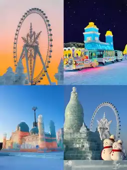 Go to Harbin Ice and Snow World, the world's largest ice and snow theme park. The ice sculptures are crystal clear in the sun during the day and lit up at night, as if you are in a fairy tale world. It is recommended to arrange at least half a day to play and experience the ice slides, snowflake Ferris wheel and other projects.