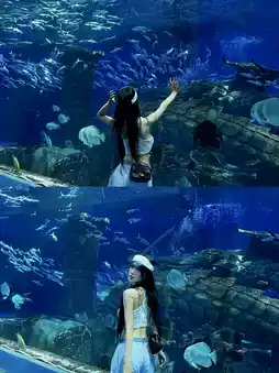 💗Mermaid🧜♀️performance The core location of the indoor viewing area The moment the bubbles🫧 from the seabed rise up is so beautiful that I don't want to speak. It is the most professional and rich mermaid performance I have ever seen, and it is long enough to watch.