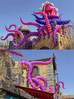 🌟Crazy tentacles are coming (the roofs of the park are covered with pink octopus tentacles 🐙)
