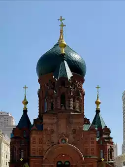 Bathed in daylight or the warm glow of sunset, St. Sophia Cathedral stands as a majestic symbol of Harbin’s multicultural past. This Byzantine Revival masterpiece, built in 1907, once served as an Orthodox church during the era of the Russian-built Chinese Eastern Railway. Its striking green domes and weathered red bricks contrast beautifully against the modern cityscape, while the surrounding square buzzes with history and life. A true architectural gem where East meets West.