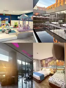 Shark Hotel: Cool shark-view windows in the lobby and water bar, scenic views right outside your window, and convenient all-in-one dining, stay, and play!